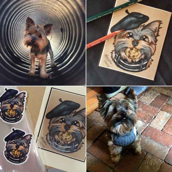 Full colored on heavyweight paper in prisma color pencil. $350 for a single pet featured, can add another pet in the portrait for an additional $50. Can be up to three pets, but one to two is recommended for limited space. Get stickers for $60 per pet.